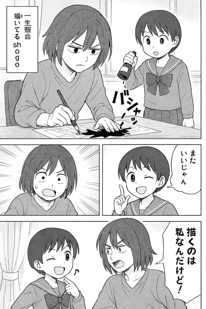 本当は原稿の上にインクがこぼれる表現にしてほしかったんですけどね…